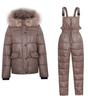 Женское зимнее короткое глянцевое ветрозащитное водонепроницаемое пальто с капюшоном, костюм из двух предметов, куртка-пуховик, парки с хлопковой подкладкой, теплая верхняя одежда