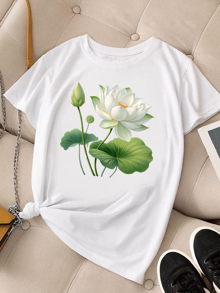 (Азиатский размер) Одежда Женская Мода Футболка Топ милый цветок тренд Женская Футболка Женская Принт Короткий Рукав Графические Футболки