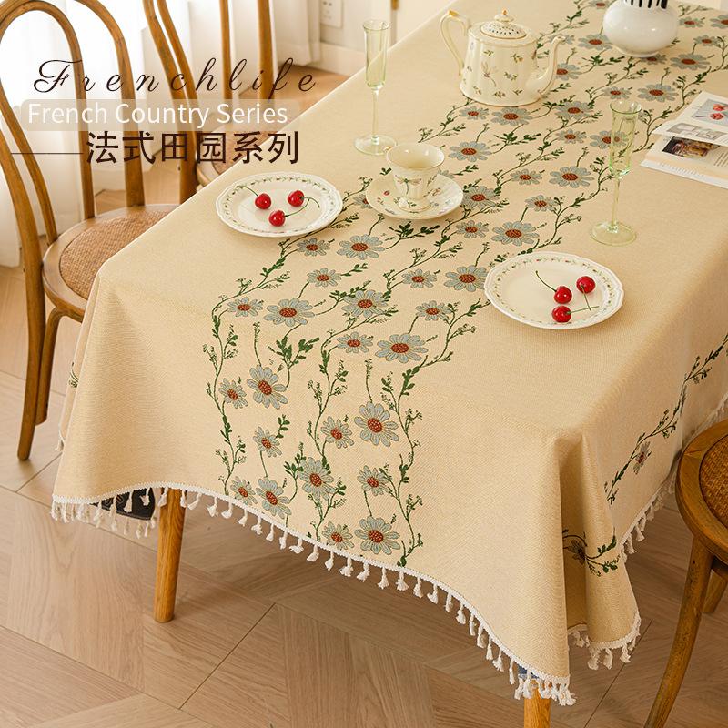 High-Grade Embroidery Pastoral Small Fresh Tablecloth Cotton And Linen French Pastoral Tablecloth High-Grade Light Luxury Household