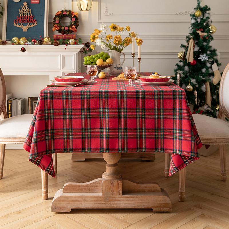 Red And Green Plaid Tablecloth Cotton And Linen Art Table Cloth Christmas Party Decorative Cloth Rectangular Tablecloth Cover Cloth