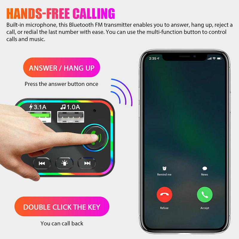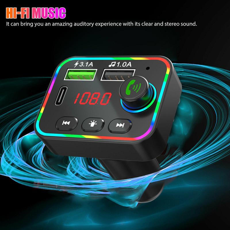 Usb Car Charger Bluetooth-compatible 5.0 Fm Transmitter Mp3 Player F4u Disk/tf Card F4 Colorful
