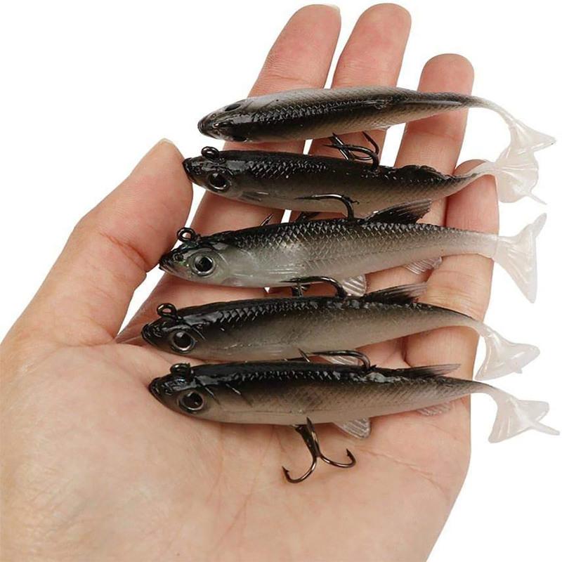 5 шт., 4 г, 8 см, мягкие рыболовные приманки с Т-образным хвостом, универсальные, реалистичные, с 3d глазами, приманка для ловли окуня