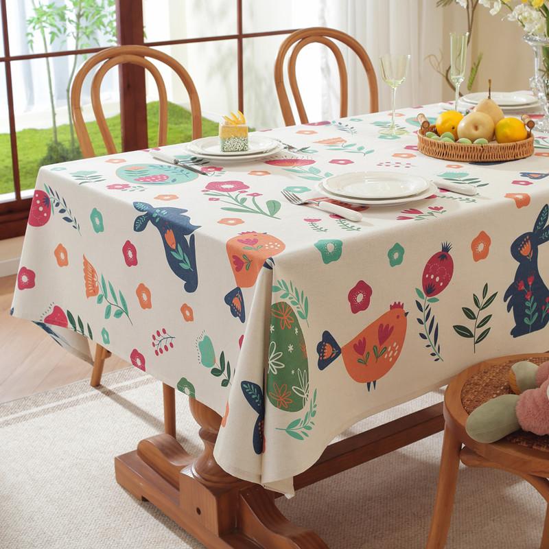 Пасхальный принт Бахрома Кролик Цветок Прямоугольная Скатерть Скатерть для Кофейного Столика