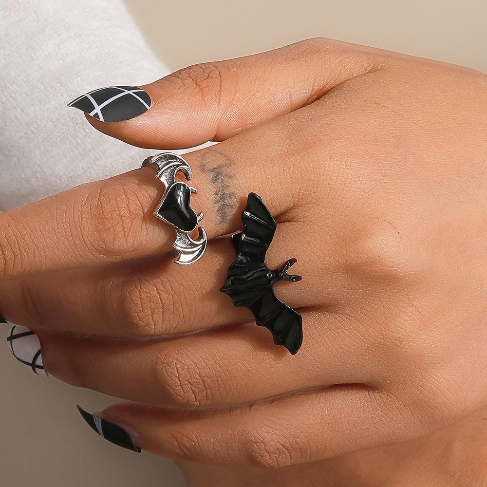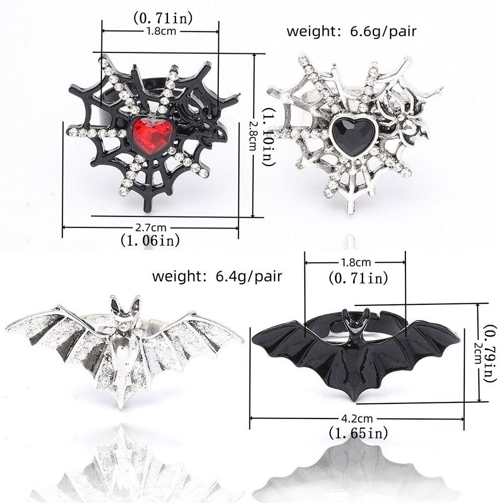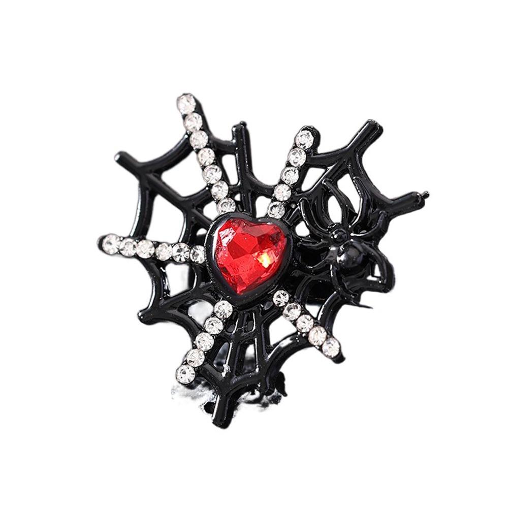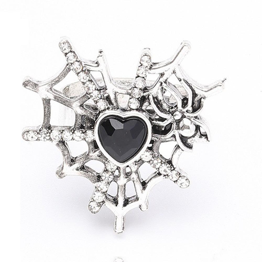 Shiny Rhinestone Spider Web Heart Ring Dark Fashion Halloween Opening Ring Cosplay Jewelry
