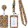 Модный набор держателей для бейджей с красочным цветочным принтом подсолнуха, ремешок для удостоверения личности с рукавом для удостоверения личности