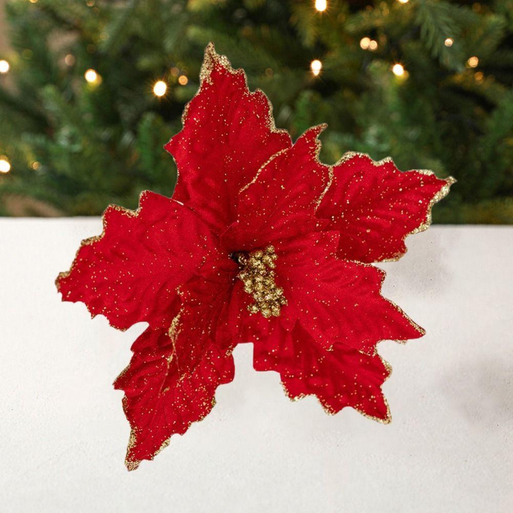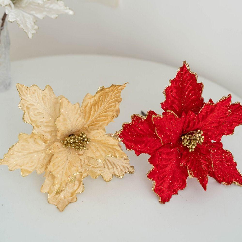 DIY Artificial Christmas Flowers Handmade Xmas Tree Ornaments Simulated Christmas Flower Christmas