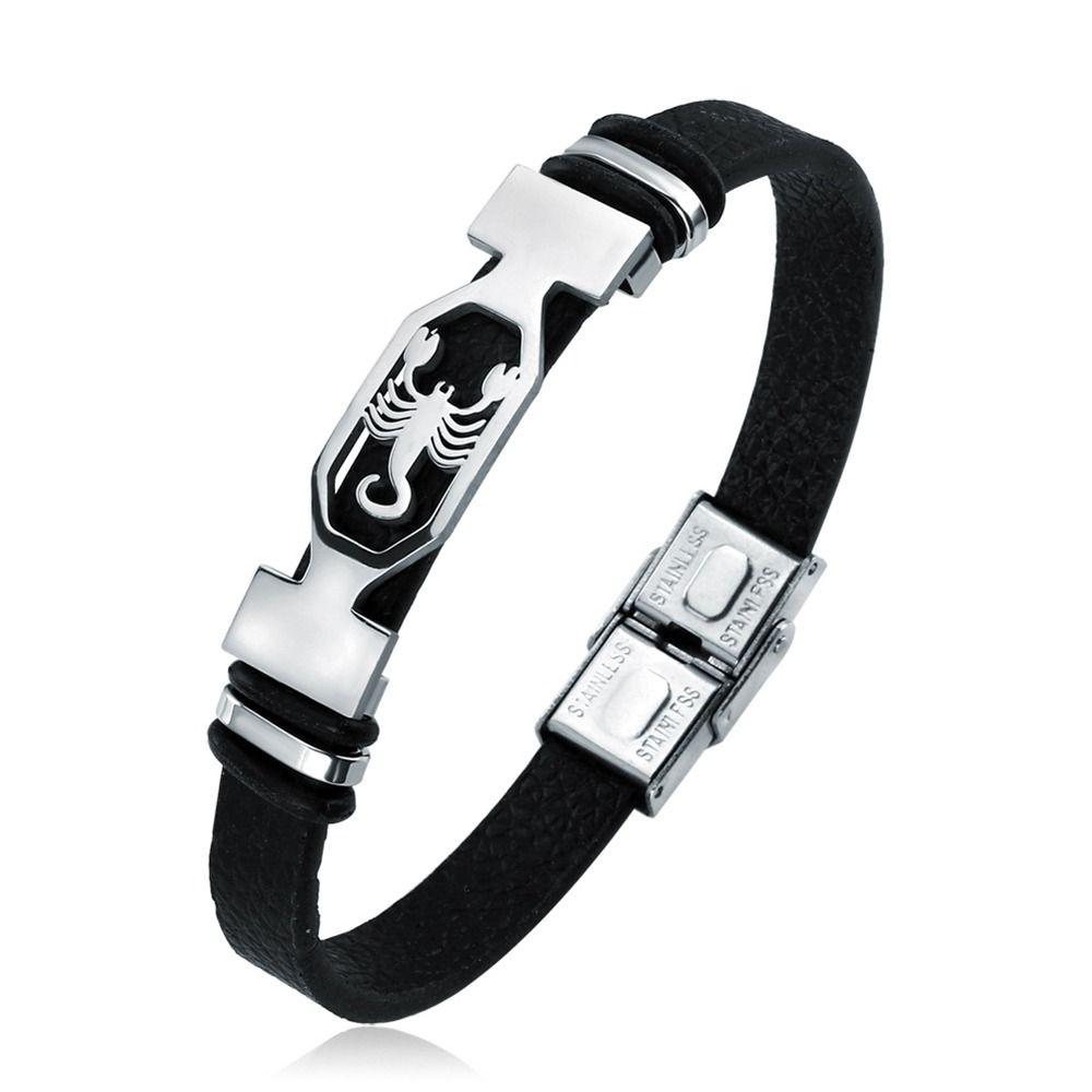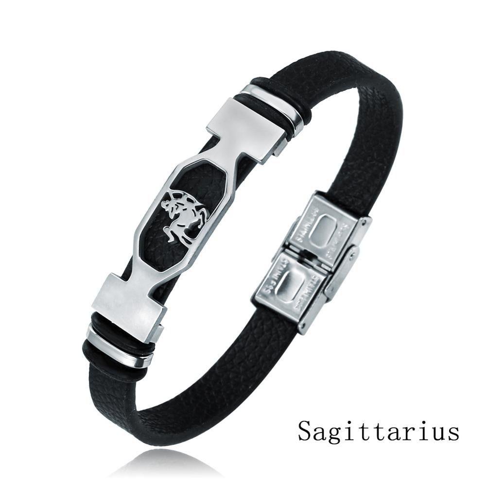 Браслет со знаком зодиака 12 созвездий Мужской браслет Нержавеющая сталь Черный кожаный браслет