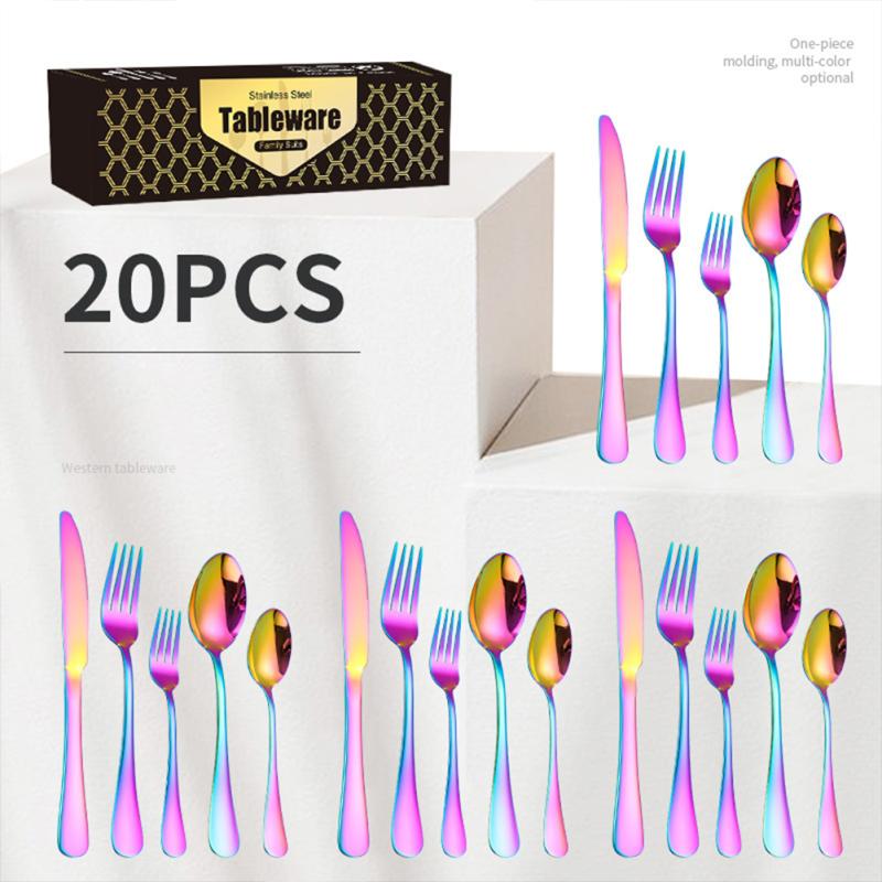 Набор столовых приборов из 20 штук с зеркальной отделкой и гладкими краями, набор из нержавеющей стали включает вилку, ложку, кухонные принадлежности
