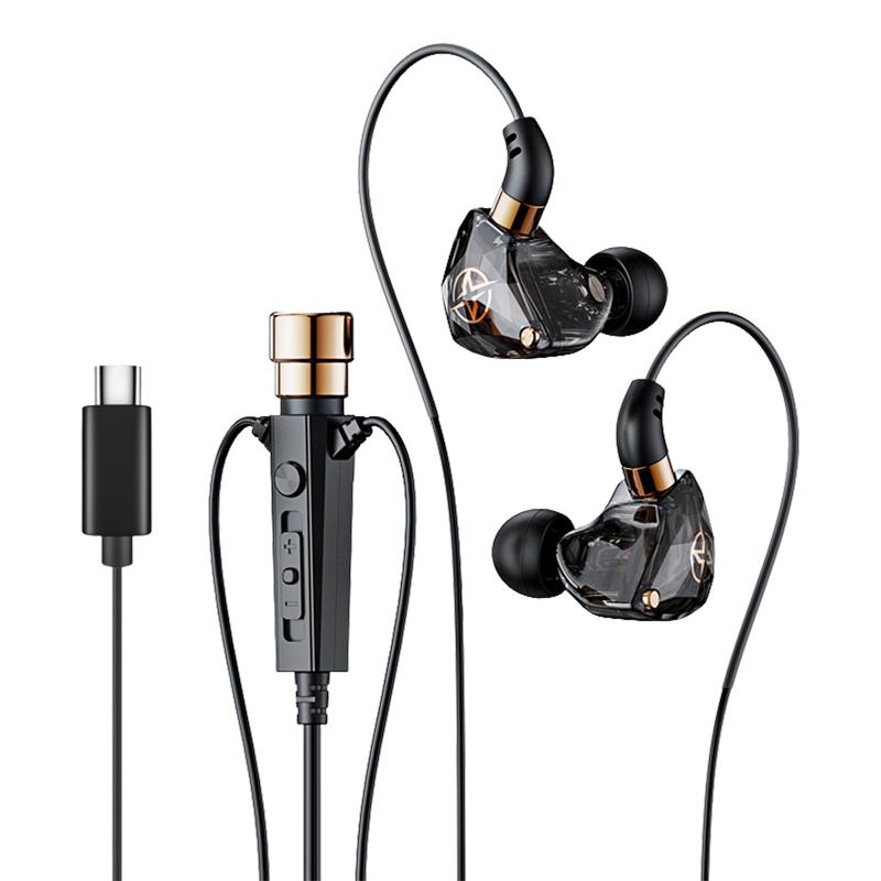 Проводная гарнитура Typ-c с микрофоном, наушниками-вкладышами с шумоподавлением для живого пения