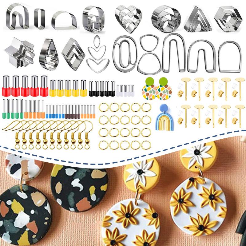 1. Один комплект для всех нужд: Набор фрез для полимерной глины включает в себя 36 штук резаков полимерной глины с различной геометрией, 40 штук мягких глиняных круглых фрез + 10 кусков золотых ушных крючков + 10 штук ушных шпилек + 10 штук беруш+ 20 прыжковых колец