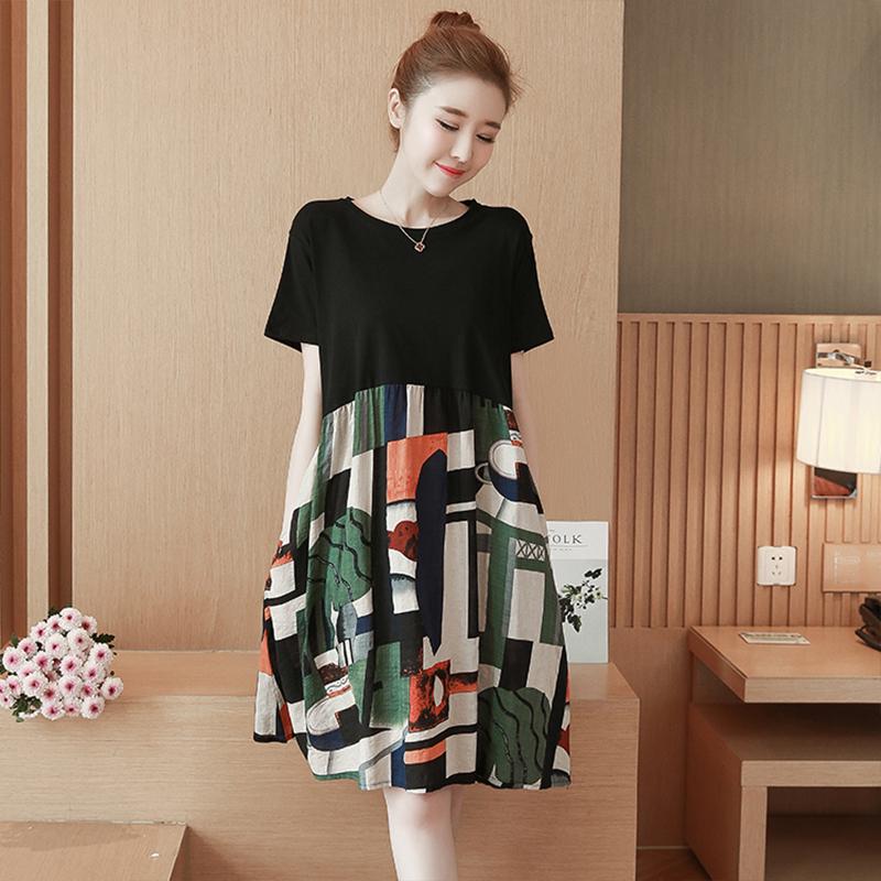 Женское летнее модное свободное платье трапециевидной формы с коротким рукавом и принтом