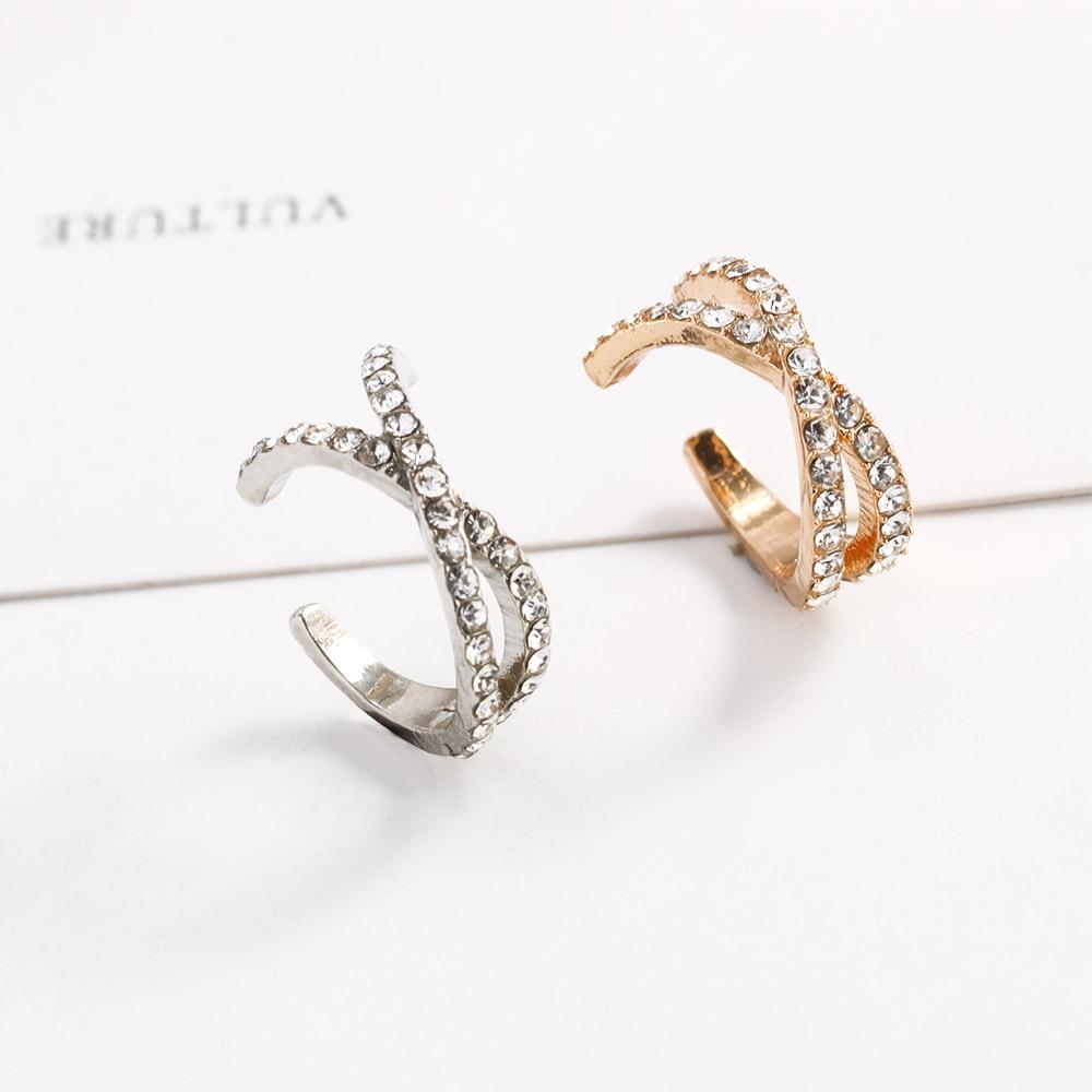 Female Girls Non Pierced Geometric Temperament Crystal Ear Clips Women Ear Cuff Cross Clip Earrings