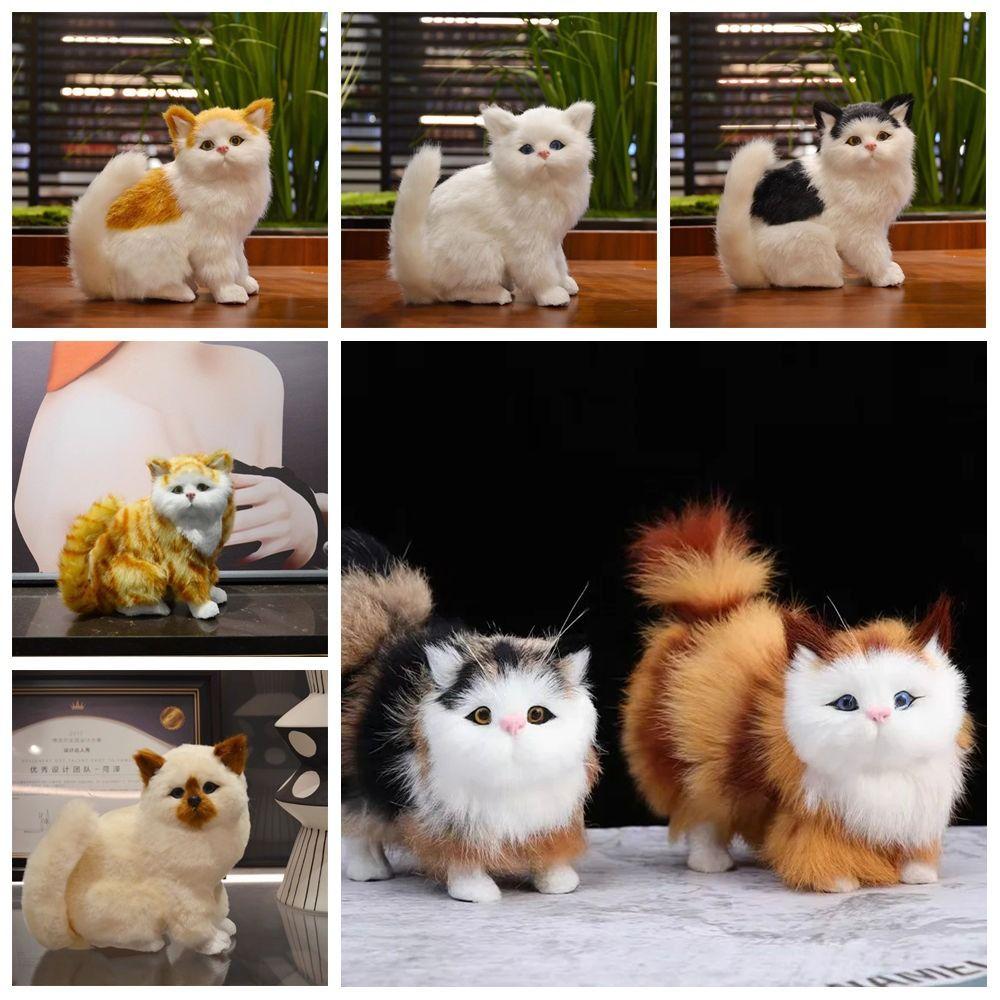 Сидячая поза Реалистичная кошка Чучело 3D глаза Реалистичная кошка Плюшевая игрушка Домашний декор