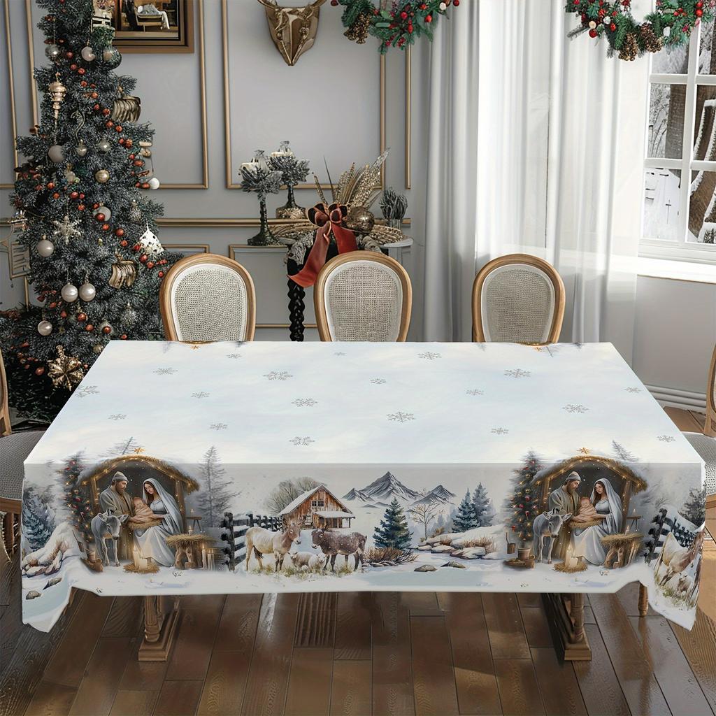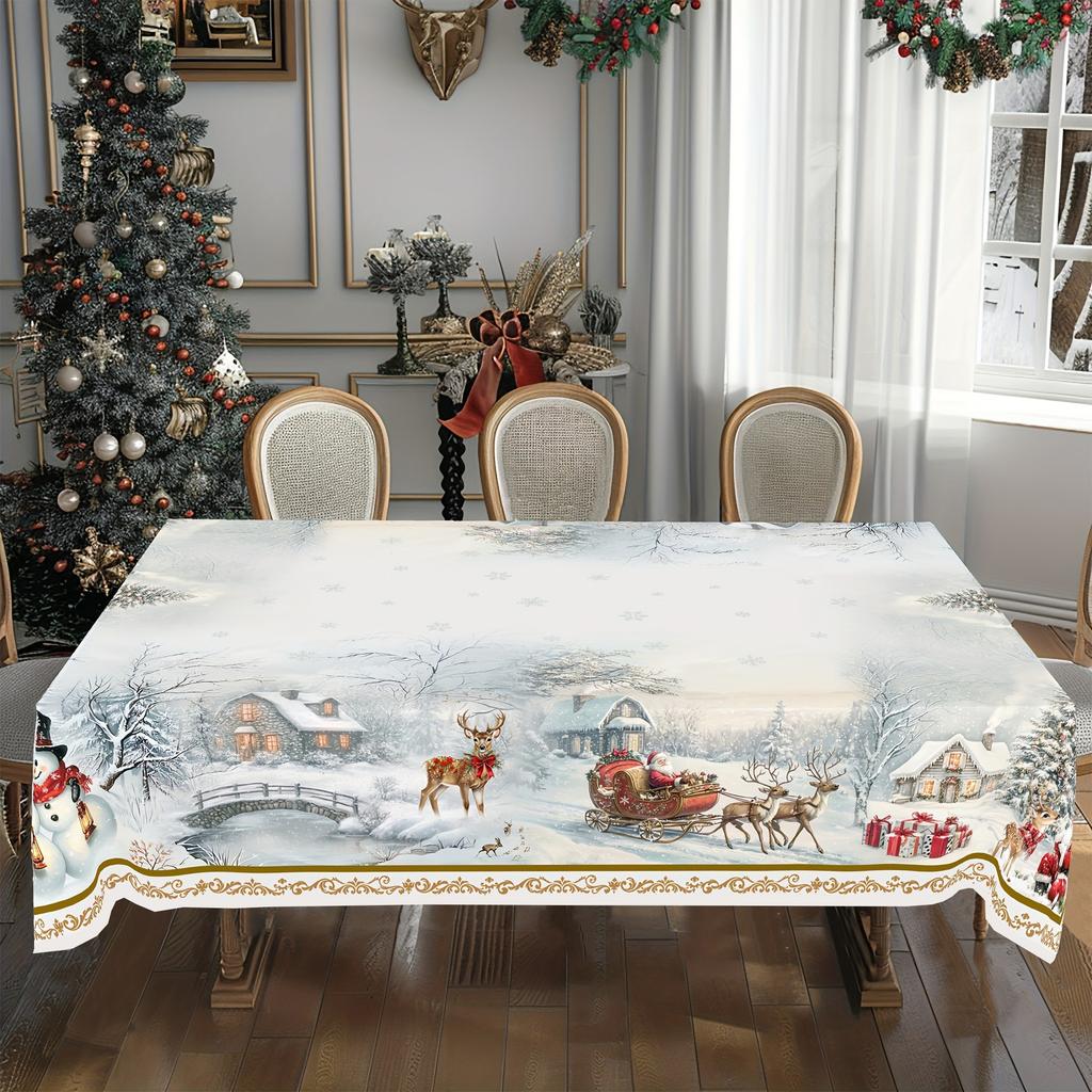 Рождественская скатерть Снеговик Лось Цифровая печать Абразивная ткань Скатерть Украшение стола