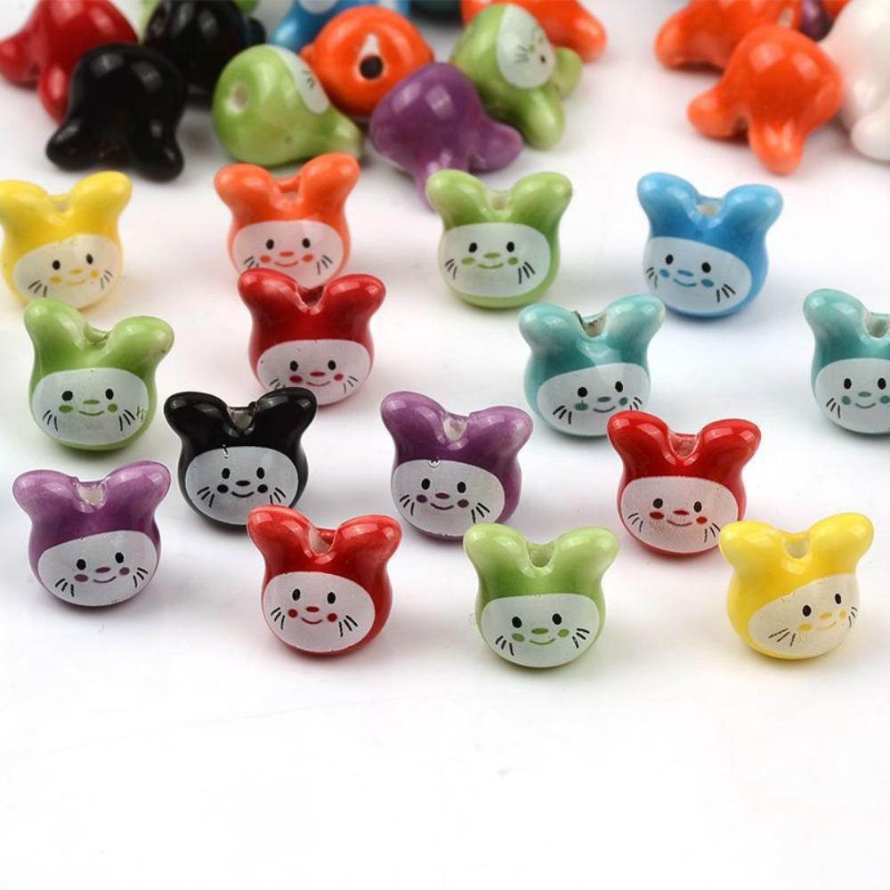 10Pcs Ceramic Cute Rabbit Ceramic Beads Rabbit Rabbit Shape Porcelain Bead Necklace Accessories