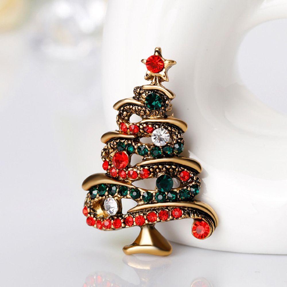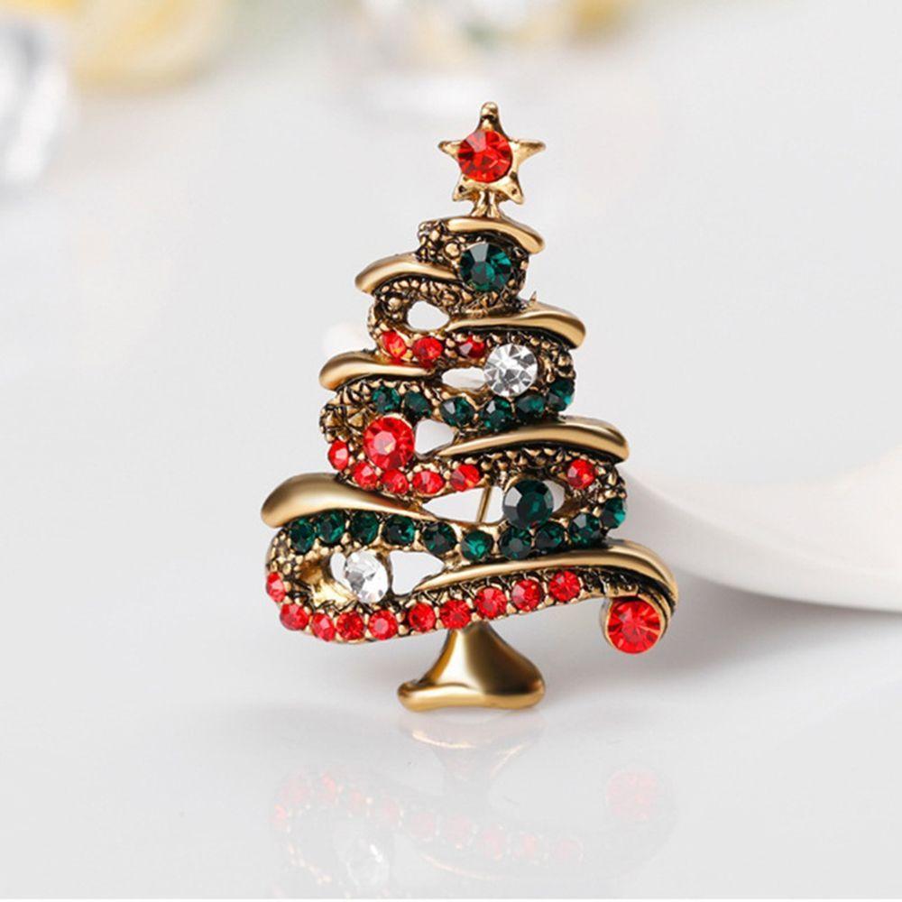 Crystal Collar Brooch Santa Colorful Jewelry Tree Vintage Rhinestone Pin Christmas Tree Brooch