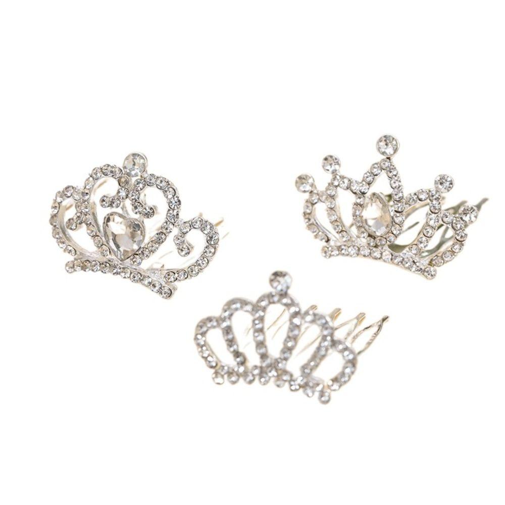 Love Heart Children Tiara Headband Star Rhinestone Hairpins Sweet Crystal Crown Hair Comb Bridal