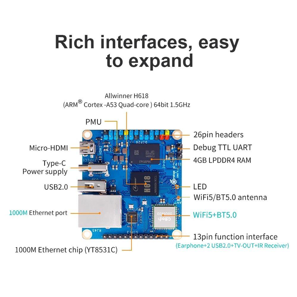 WiFi5 Orange Pi Zero 3 Allwinner H618 Single Board Computer Zero3 Development Board Development