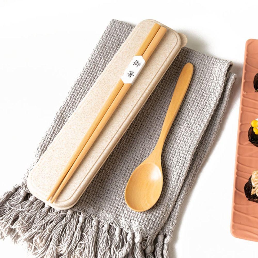 Reusable Portable Tableware With Box Cutlery Set Camp Wooden Chopsticks Spoon Set Adults/Students
