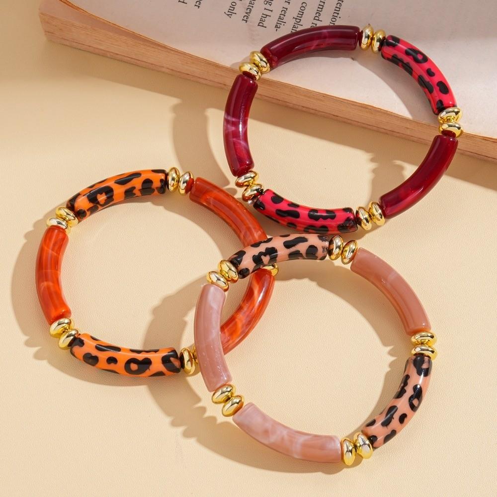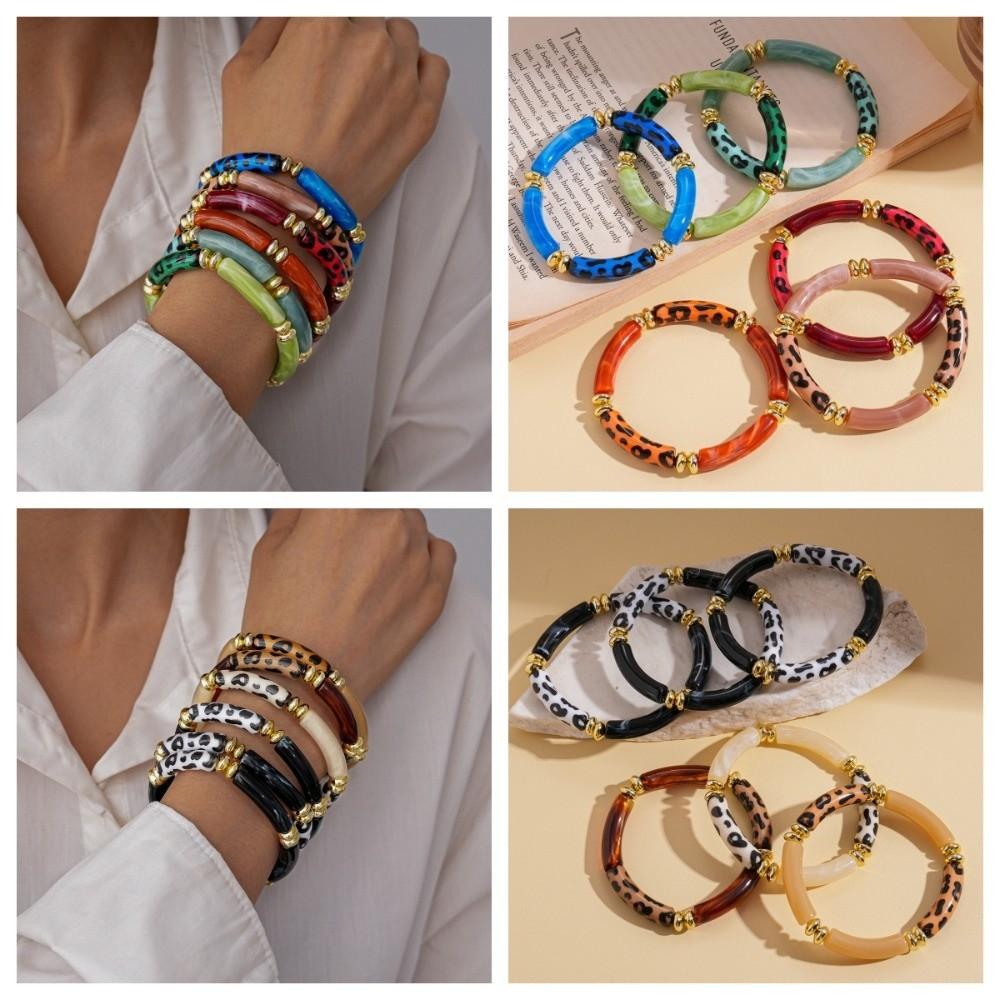 Акриловый Леопард Акриловые Браслеты Нарукавник Изогнутый Трубчатый Браслет Бохо Акриловые Браслеты Женщины