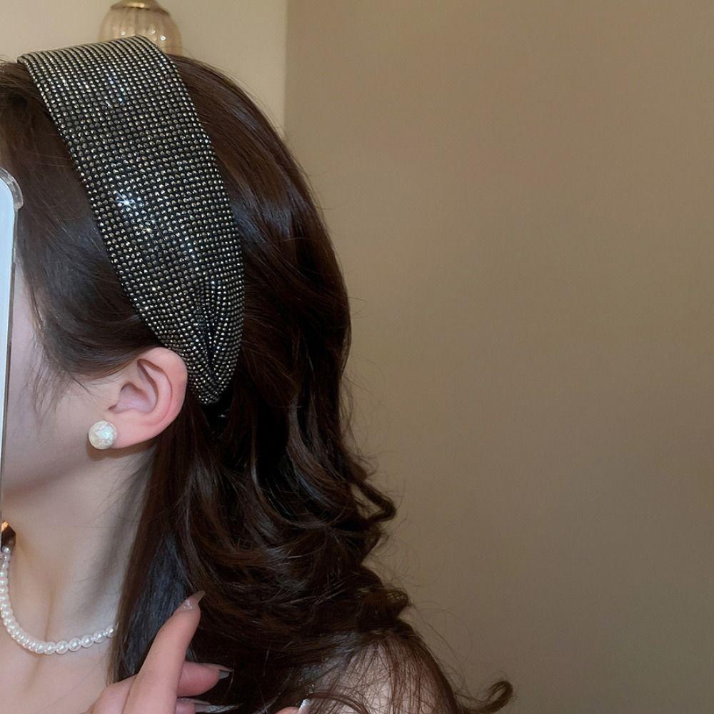 Face Wash Wide Edge Hairband Headwear Blingbling Hair Hoop Sweet Rhinestone Headband Kids