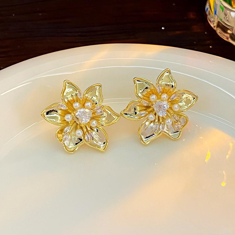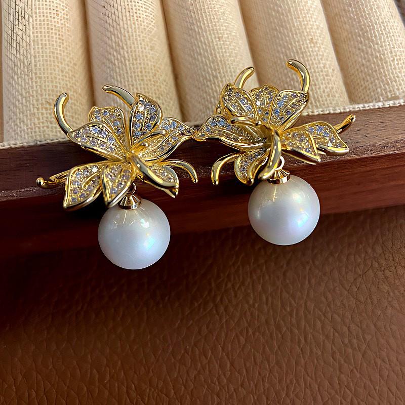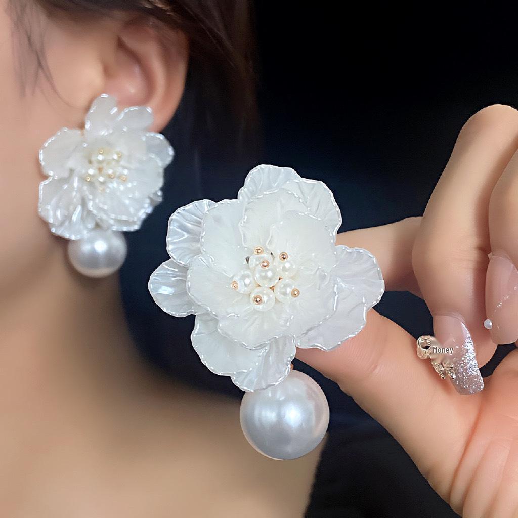 Серьги-пусеты в виде цветка жемчужно-белого цвета: Элегантные пляжные свадебные украшения