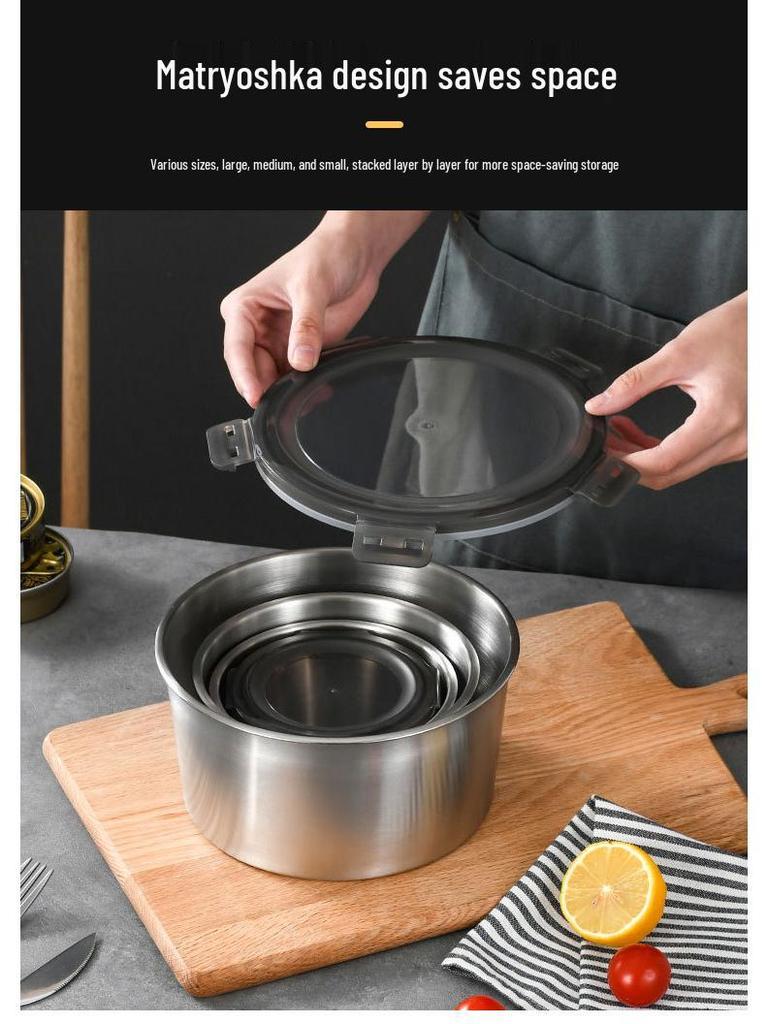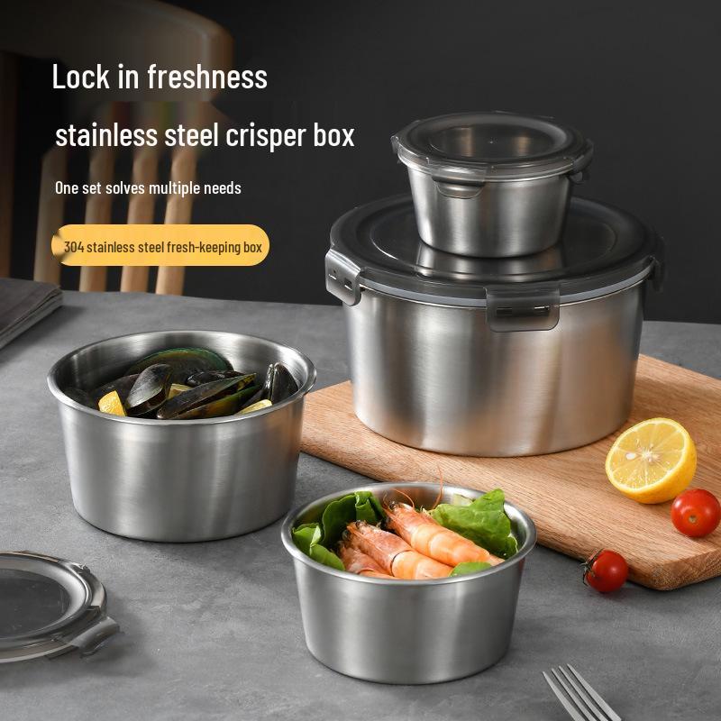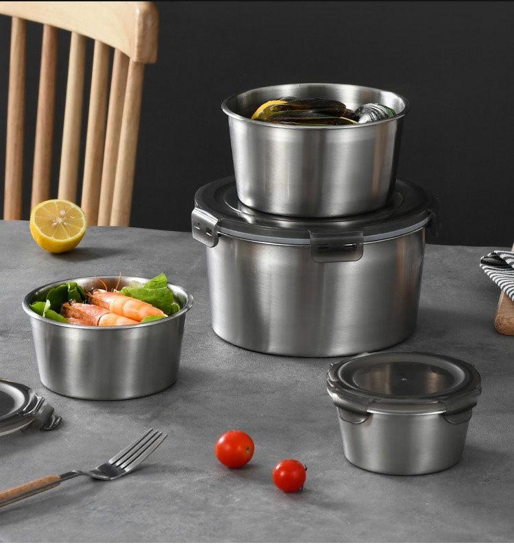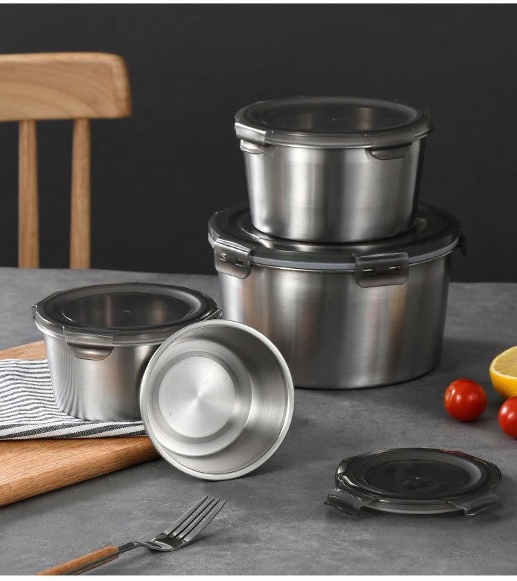 Набор контейнеров для хранения продуктов из нержавеющей стали 304 (4 шт): Круглый, Герметичный, Сохраняющий свежесть для обедов, кемпинга и пикников.