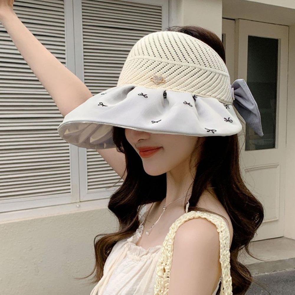 Bowknot Sun Protection Cap Topless Female Shell Hat Breathable Foldable Visor Cap Women