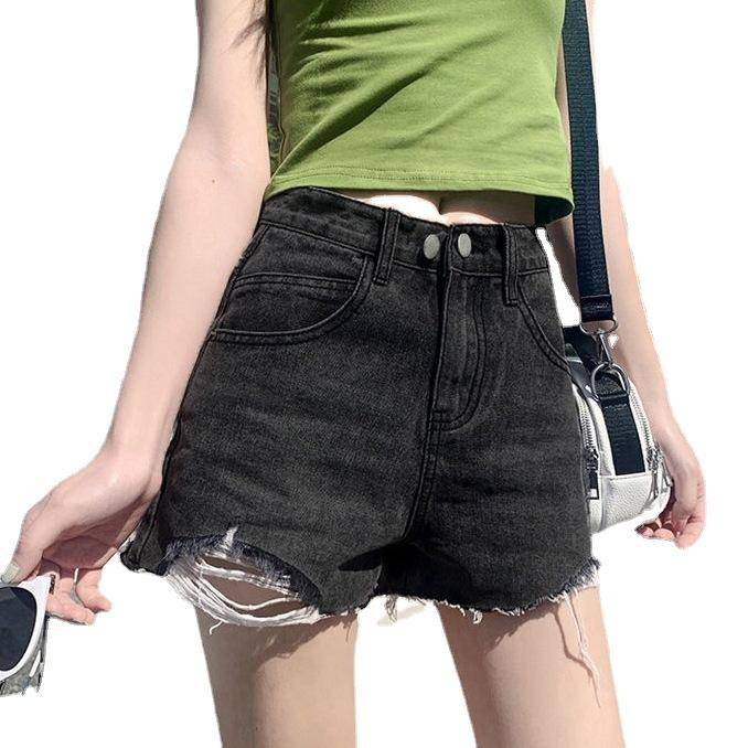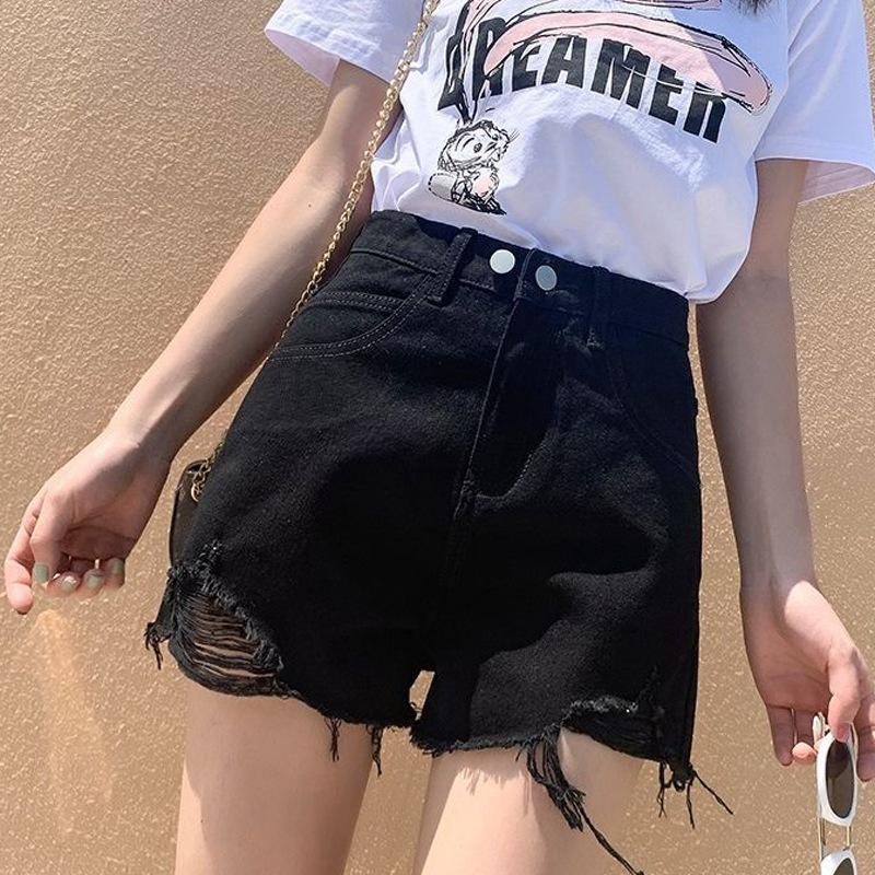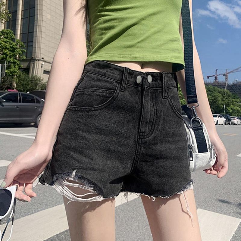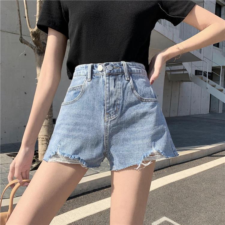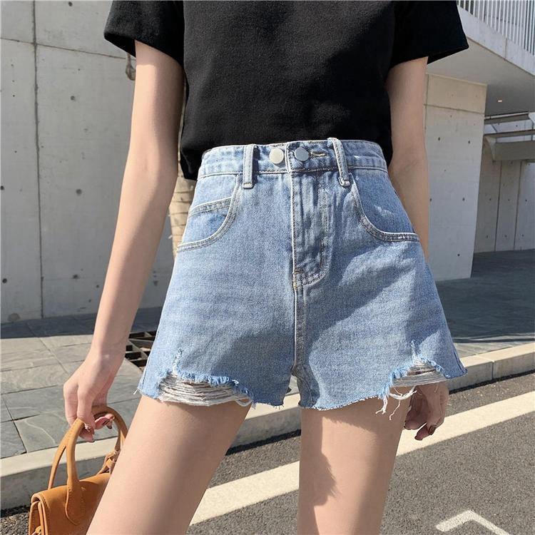 Брюки классические и минималистичные модные универсальные женские летние с высокой талией тонкие свободные наружные с дырками джинсовые шорты A Word индивидуальность