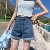 Брюки Классика и минимализм Мода Универсальные Женские Летние Свободные Тонкие Широкие Шорты Из Мешковины Джинсовые Индивидуальность и Модность