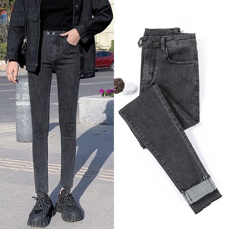 Черные и серые джинсы женские с высокой талией были тонкими в новом корейском стиле, универсальные узкие брюки-карандаш с девятью точками, трендовые универсальные брюки — купить товар онлайн с бесплатной доставкой по всему миру!