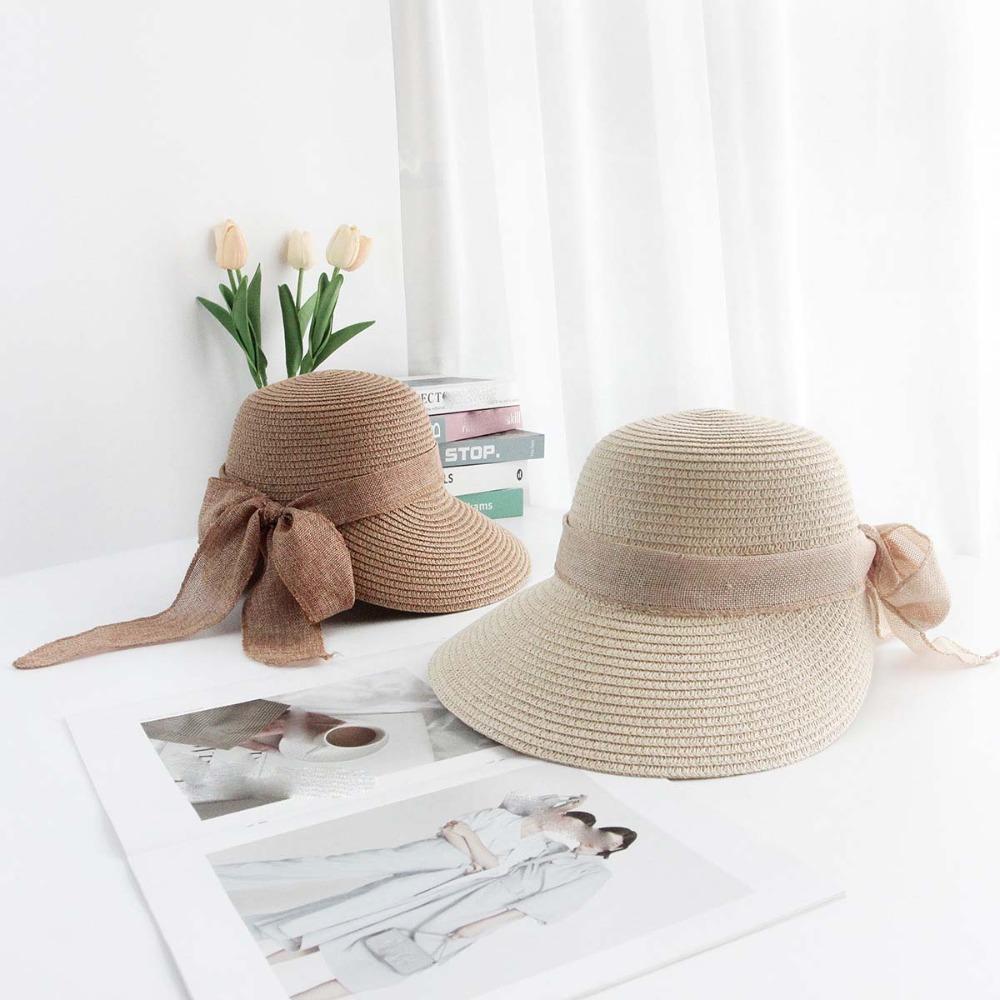 Portable Big Brimmed Woven Cap Breathable Bow Fisherman Cap Straw Weaving Beach Hat Seaside