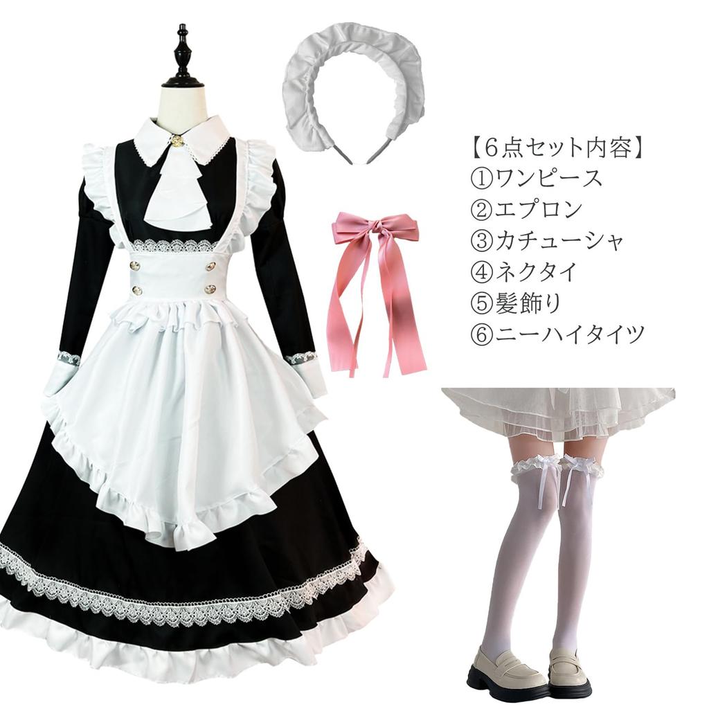 💞【6-piece set】Dress + Apron + Headband + Necktie + Hair Accessory + Knee-high Tights