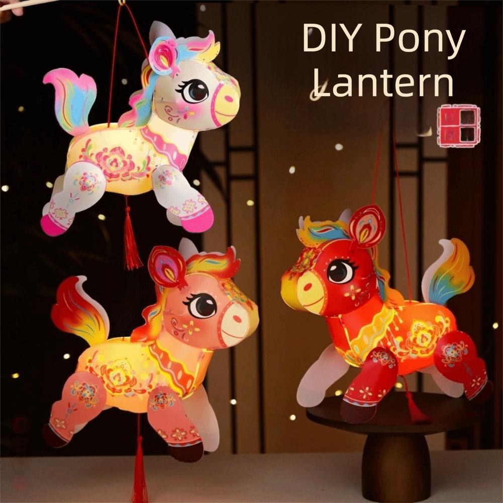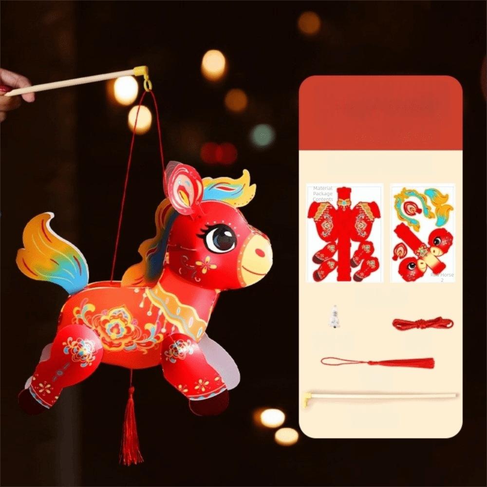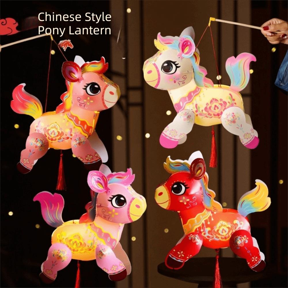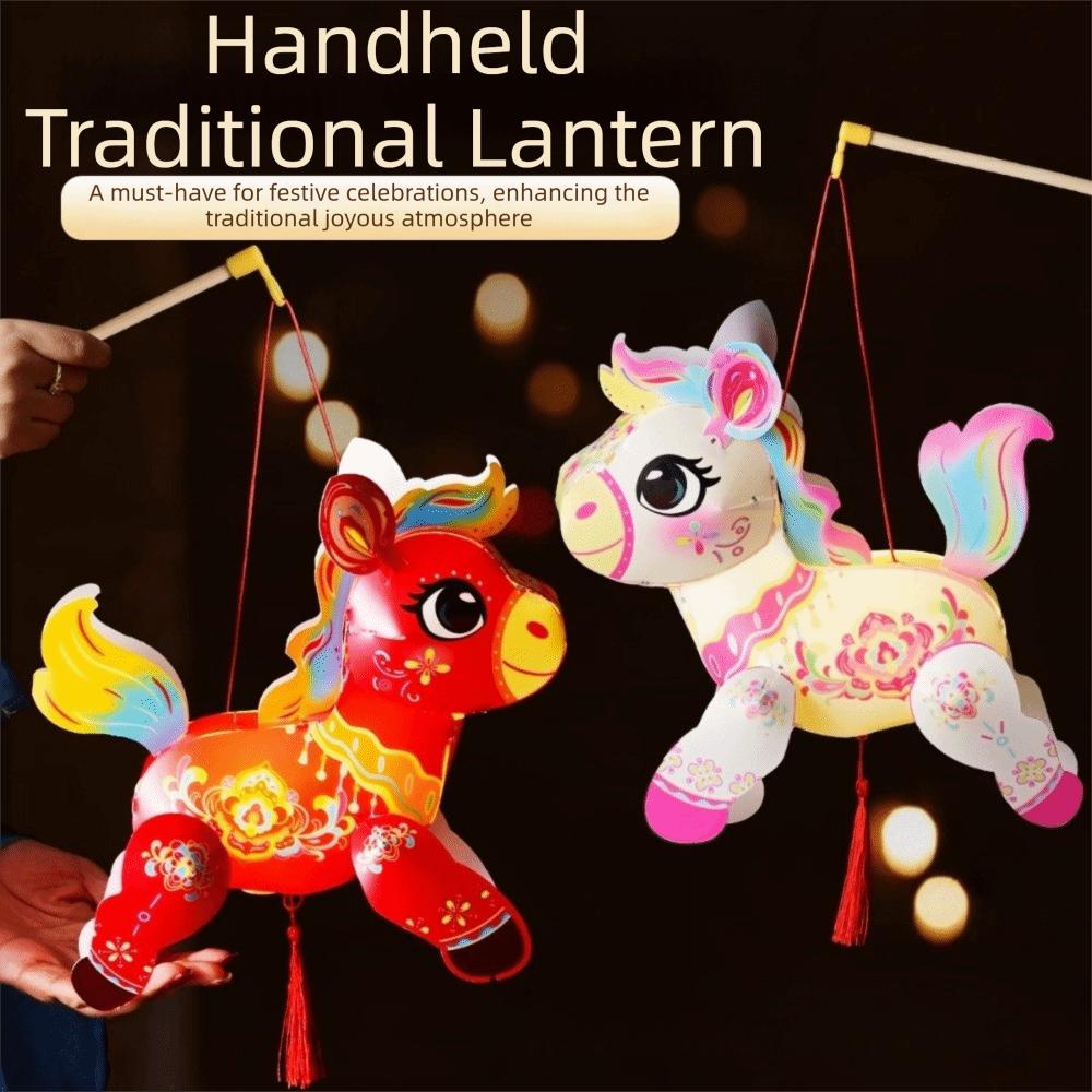 Cartoon Zodiac Horse Lantern PVC Blessing Lantern Handheld Lantern Celebration Event