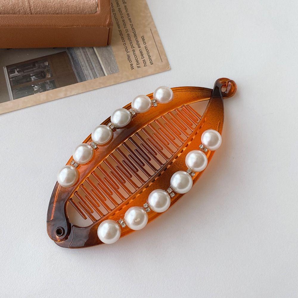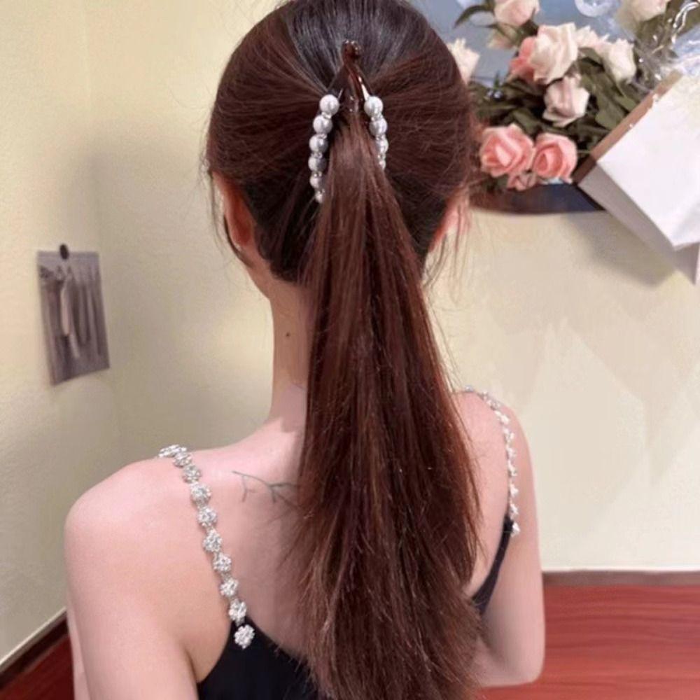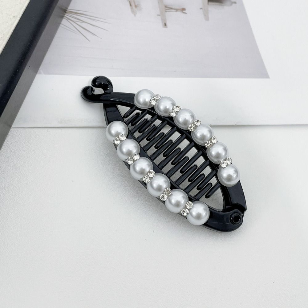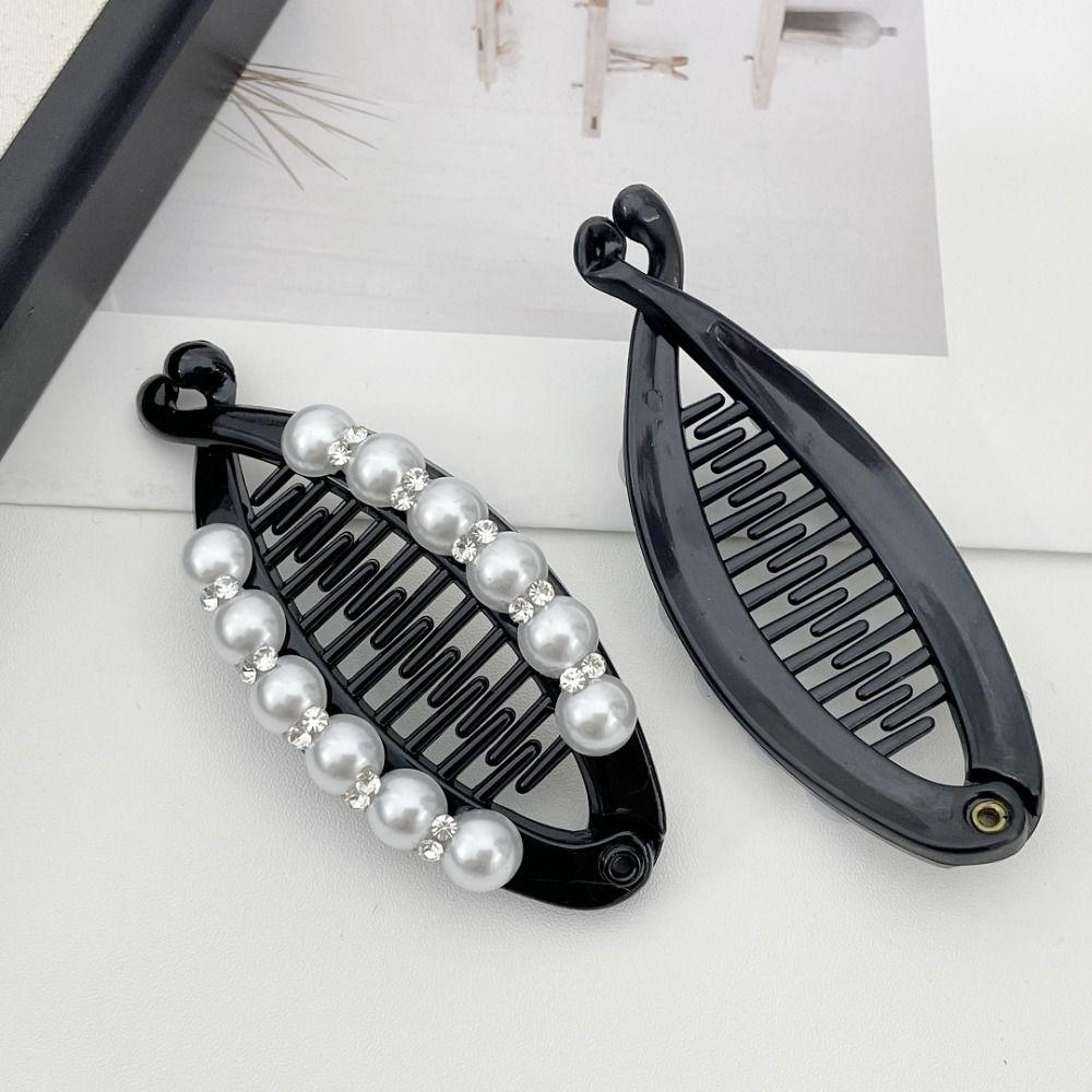 Корейский стиль Жемчужная заколка-банан Держатель для хвостика Стразы Заколка для волос Пластиковая вертикальная заколка Женщины