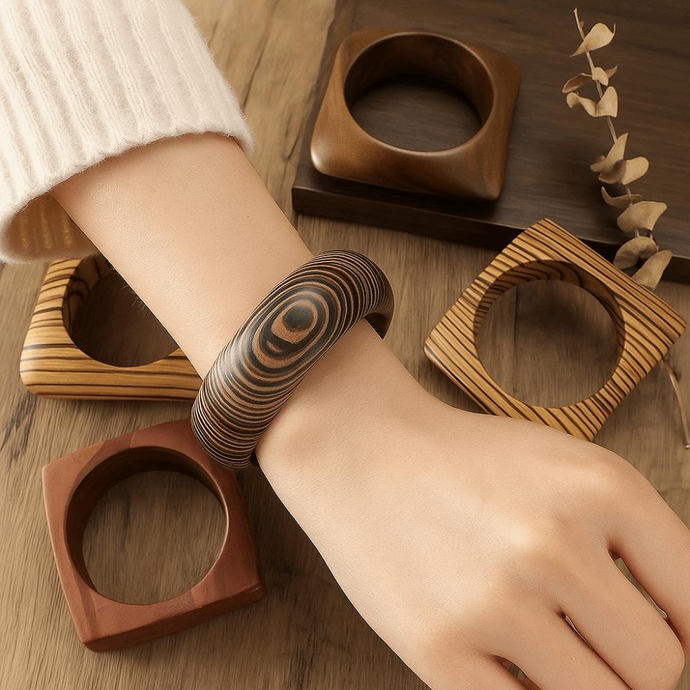 Geometric Wood Grain Bangle Square Burlywood Hand Ring Simple Wooden Bracelet Gift