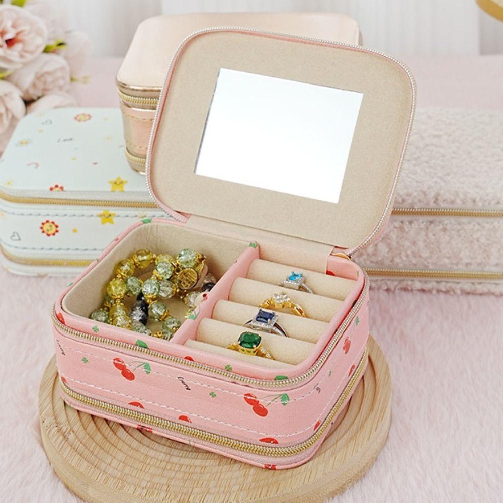 Rings Necklace Jewelry Packing Bag Cherry Flower Jewelry Holder With Mirror Gift — купить товар онлайн с бесплатной доставкой по всему миру!