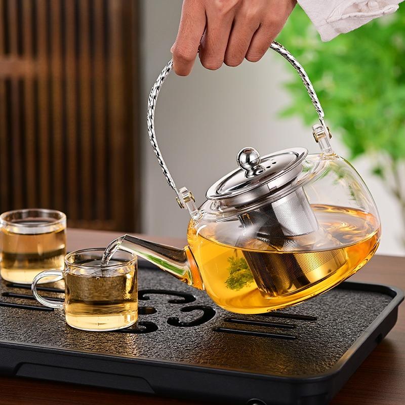Стеклянный чайник Прозрачный заварочный чайник Фильтр из нержавеющей стали заварочный чайник Бытовой термостойкий чайный сервиз для разделения чая