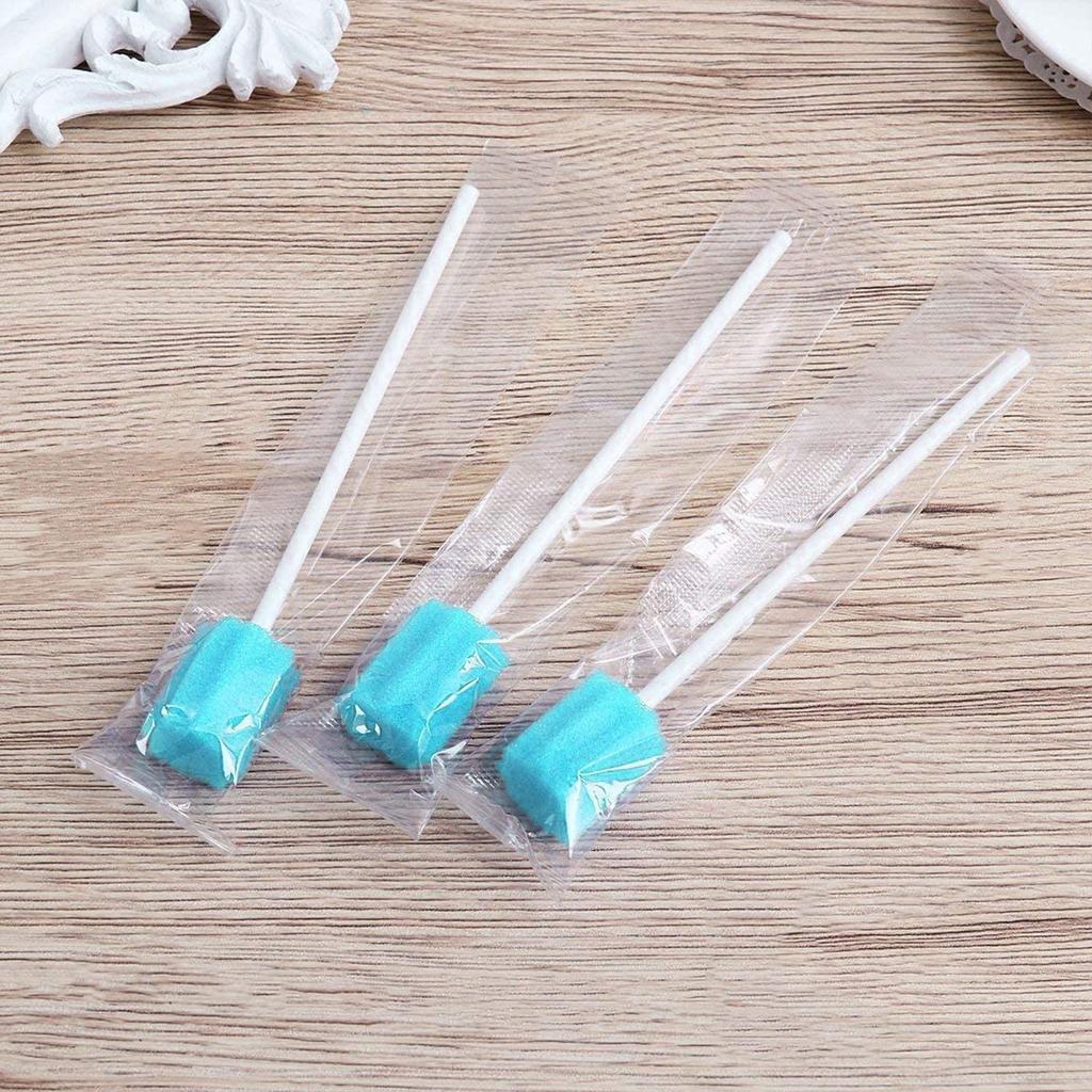 Упаковка из 100 одноразовых палочек для ухода за полостью рта с синей губкой для ухода за полостью рта