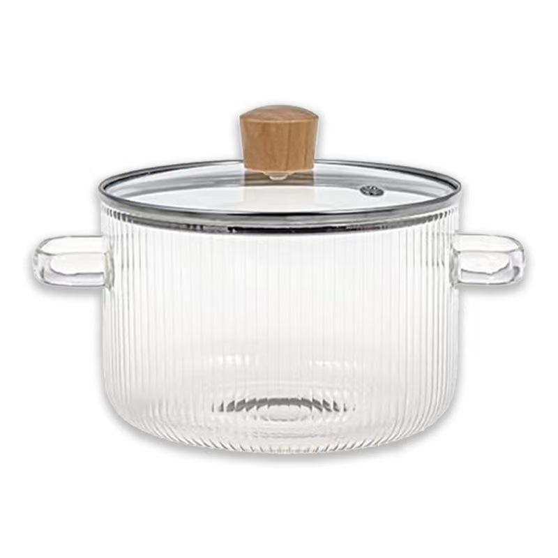 Бинауральный полосатый стеклянный горшок Бытовой утолщенный жаростойкий стеклянный горшок Можно нагревать на открытом огне для тушения суповой горшок