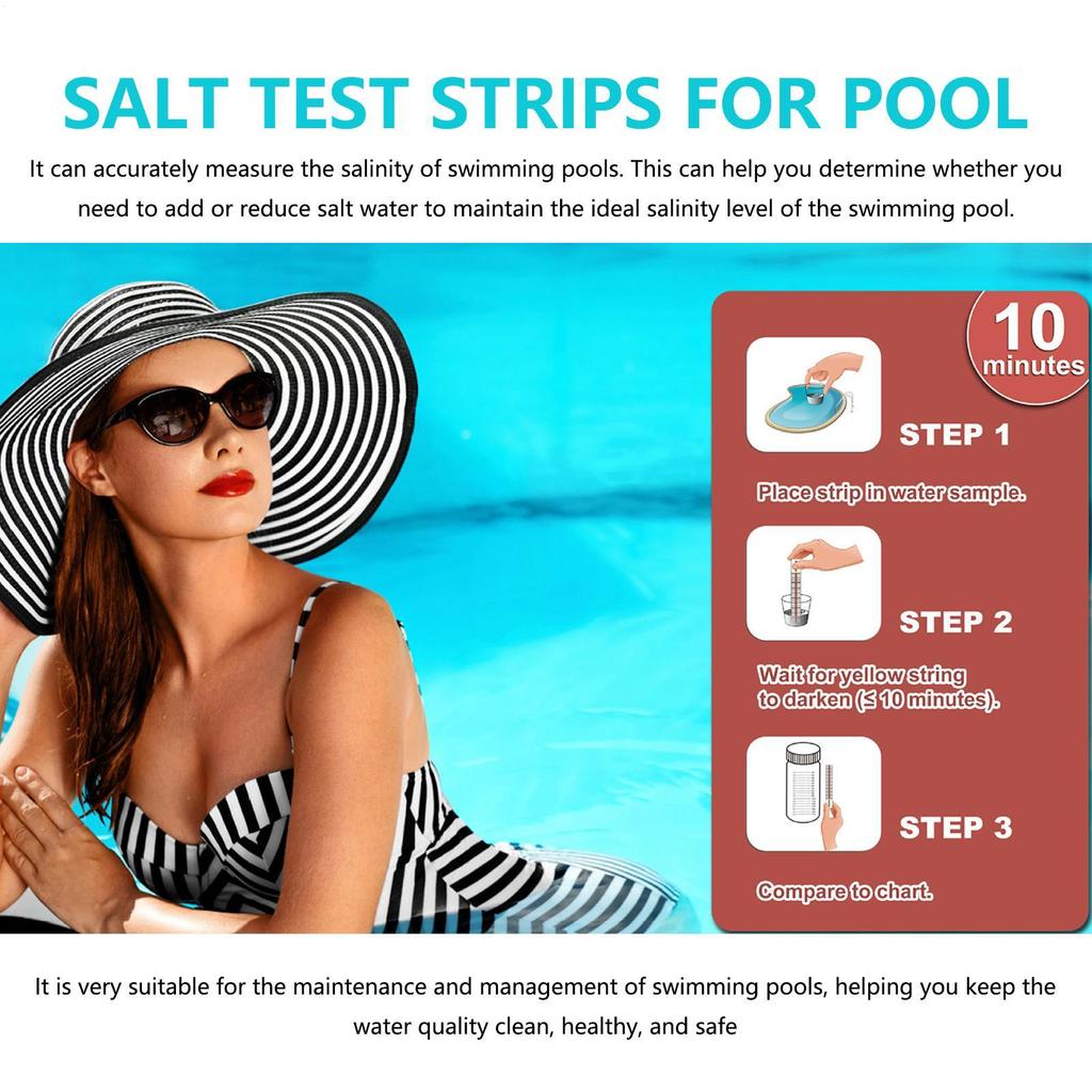 10Pcs Saltwater Detection Strips 30 seconds Pool Water Water Quality Test Kit For Water Hot Tub Spa And Swimming Pool