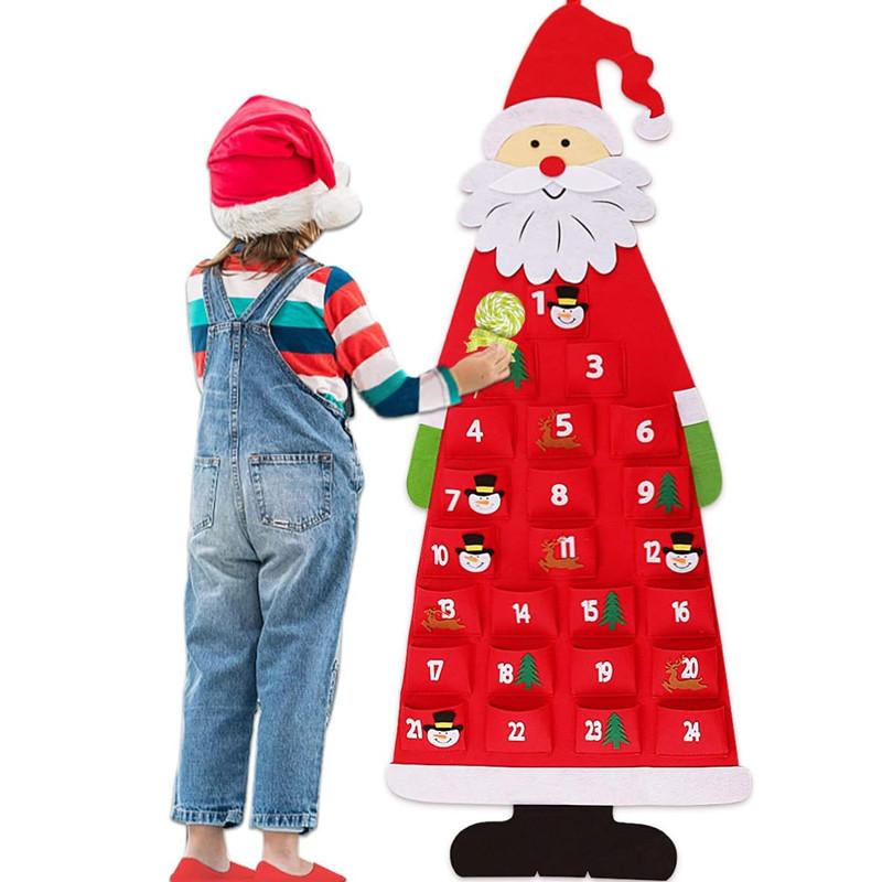 DIY Felt Santa Claus Christmas Advent Calendar with 24 Pockets DIY Xmas Decoration Ornaments Kids Toy Christmas Hanging Calendar