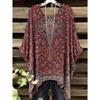 Летняя женская футболка в этническом стиле с принтом, удлиненная спереди, с круглым вырезом, повседневная, удобная, футболка в стиле Y2k, винтажная женская футболка с коротким рукавом