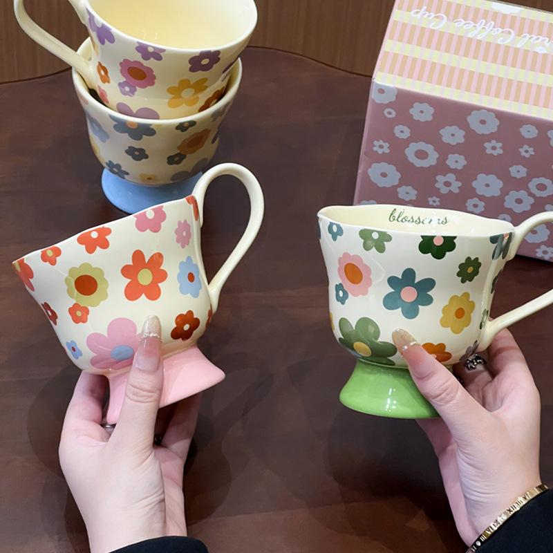 Керамическая чашка в виде подсолнуха, креативная милая керамическая чашка-бокал, ретро кружка с ложкой, чашка для завтрака
