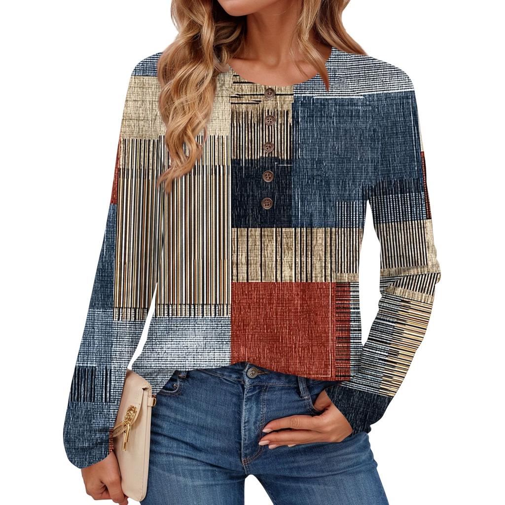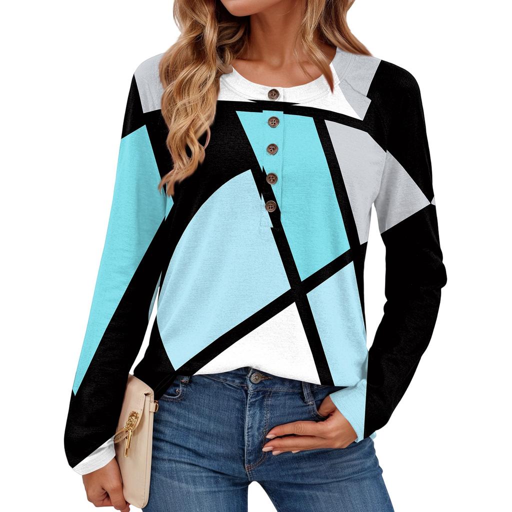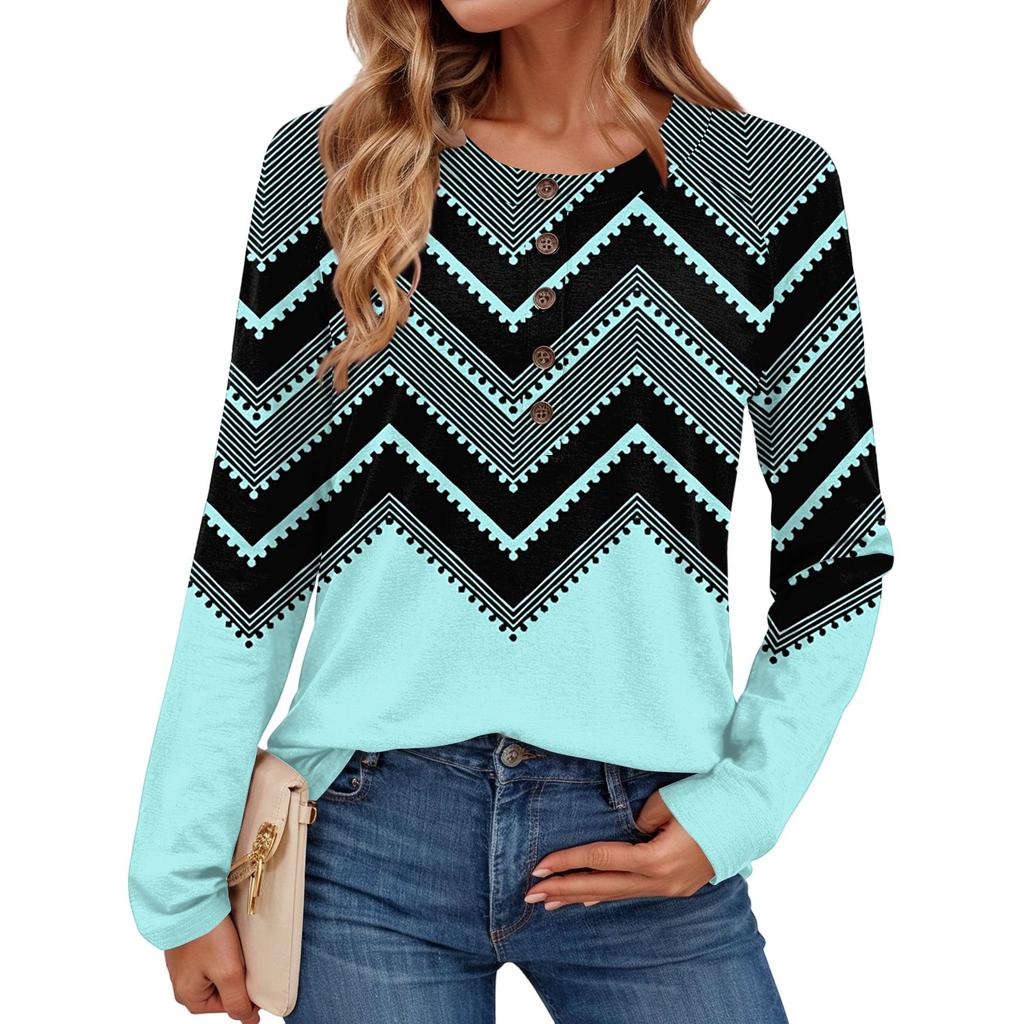 Женский модный ретро топ с геометрическим принтом, круглым вырезом и длинными рукавами