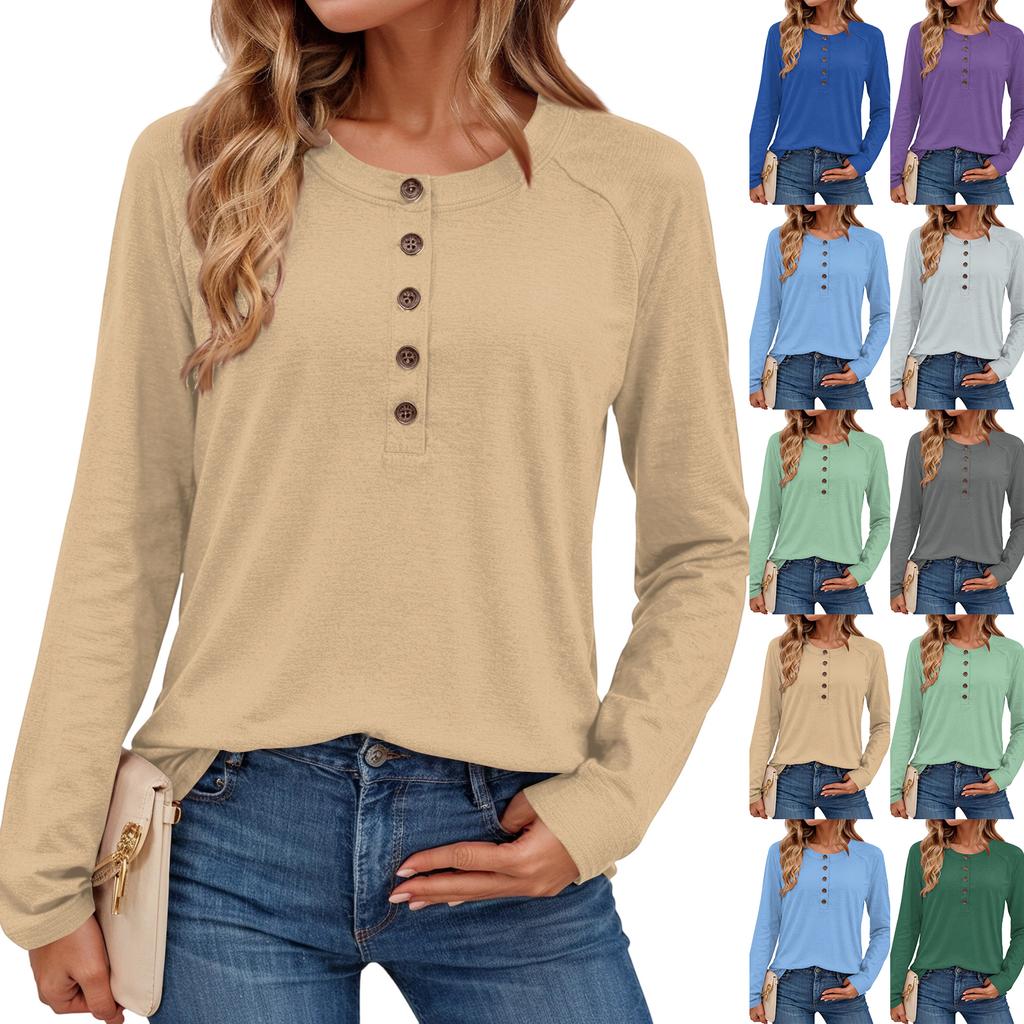 Женский стильный однотонный топ с круглым вырезом и длинными рукавами — купить товар онлайн с бесплатной доставкой по всему миру!
