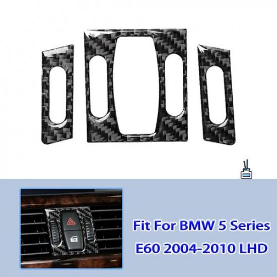 Car 3Pcs For BMW 5 Series E60 2004-10 Carbon Fiber Air Conditioner Outlet Cover