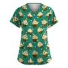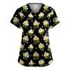 Женская милая блузка с принтом бантиков, рабочая одежда, V-образный вырез, двойной слой, карманы, базовая, с коротким рукавом, пуловер