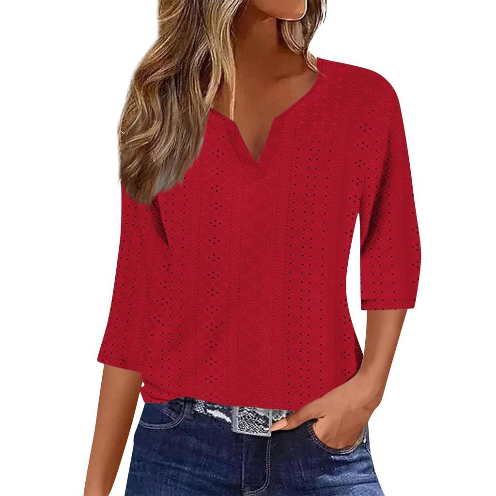 Женская модная футболка с V-образным вырезом и рукавом три четверти, повседневный однотонный топ
