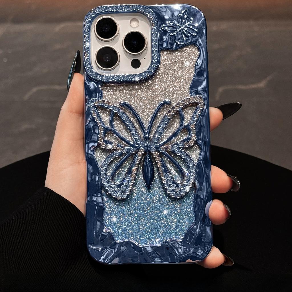 Роскошный гальванизированный чехол для телефона с блестящей бабочкой для iPhone 17 11 12 13 14 15 16 Pro Max Plus Мягкий бампер с полым узором Задняя крышка